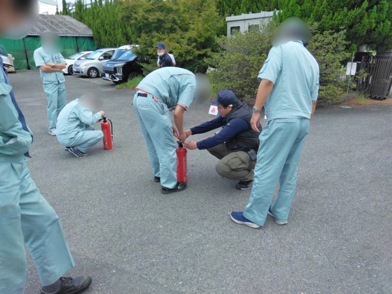 基本的な手順を学ぶことで、いざという事に慌てず消火器を使用する事が出来ますし、訓練を通して防災への意識が高まります。