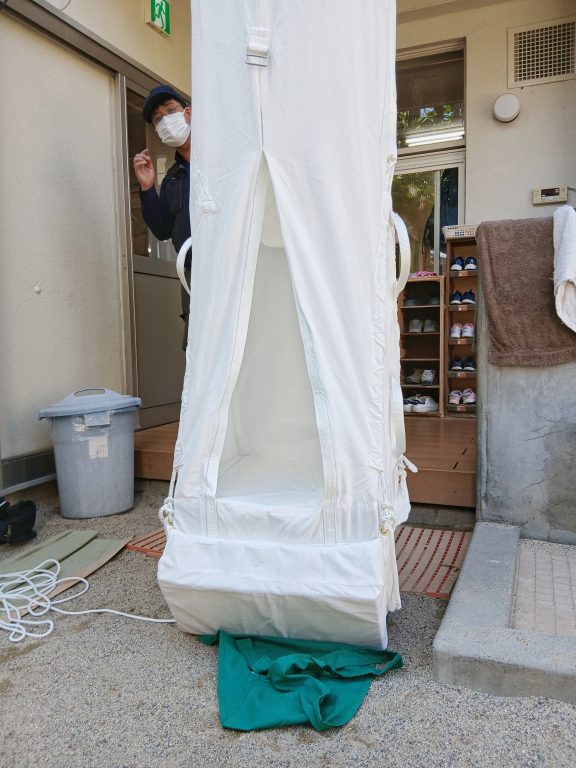 その中の避難器具(救助袋)の点検の様子をご紹介します。