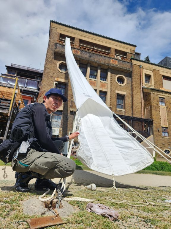 様々な消防用設備が設置されているのですが、その中から避難器具の点検の様子をご紹介します。